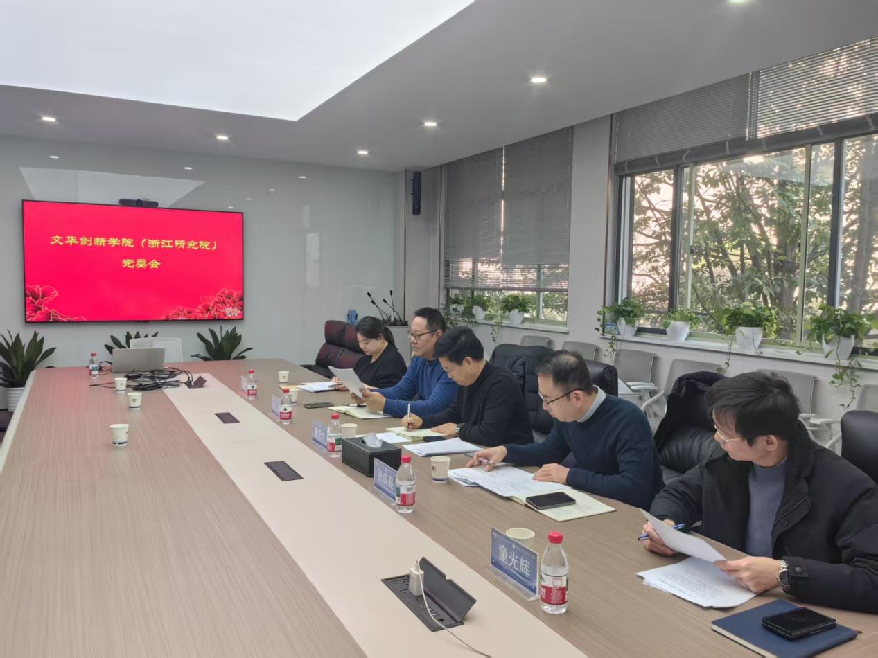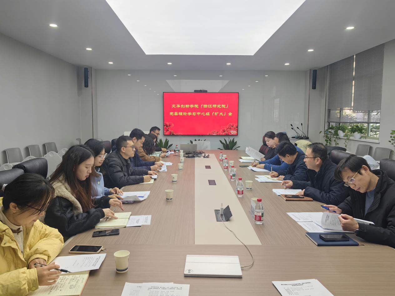 12月15日,文华创新学院(浙江研究院)党委召开党委会暨党委理论学习中心组(扩大)会议,专题研究学院党建工作,传达学习中央经济工作会议精神。校党委委员、副校长董进才全程巡听旁听会议并予以指导。学院党委领导班子成员、全体党支部书记、全院教职工参加会议。
